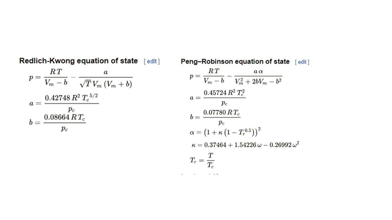 This then allowed his equation to be generalized to other fluids if the critical parameters themselves are known. Know Pc, Vc, and Tc? Then you can find a and b for the fluid. Plug a and b into the top equation and you can P, V, or T.