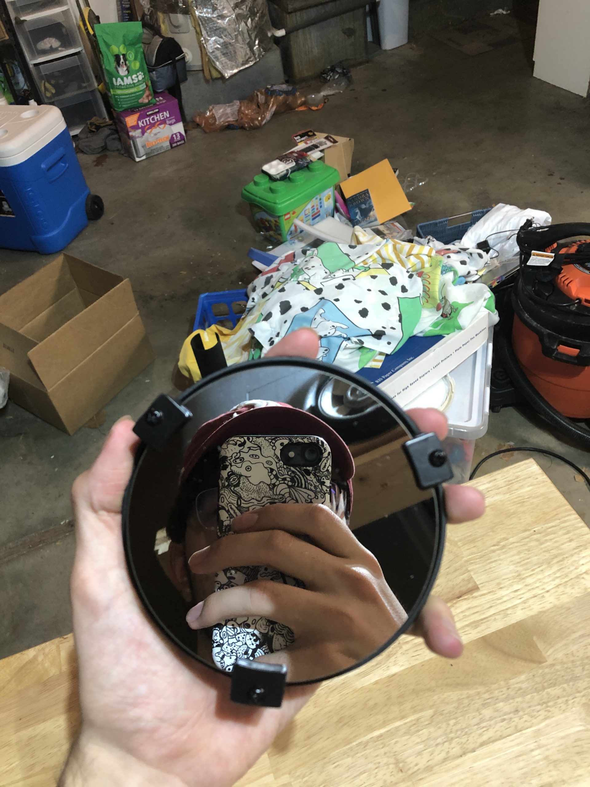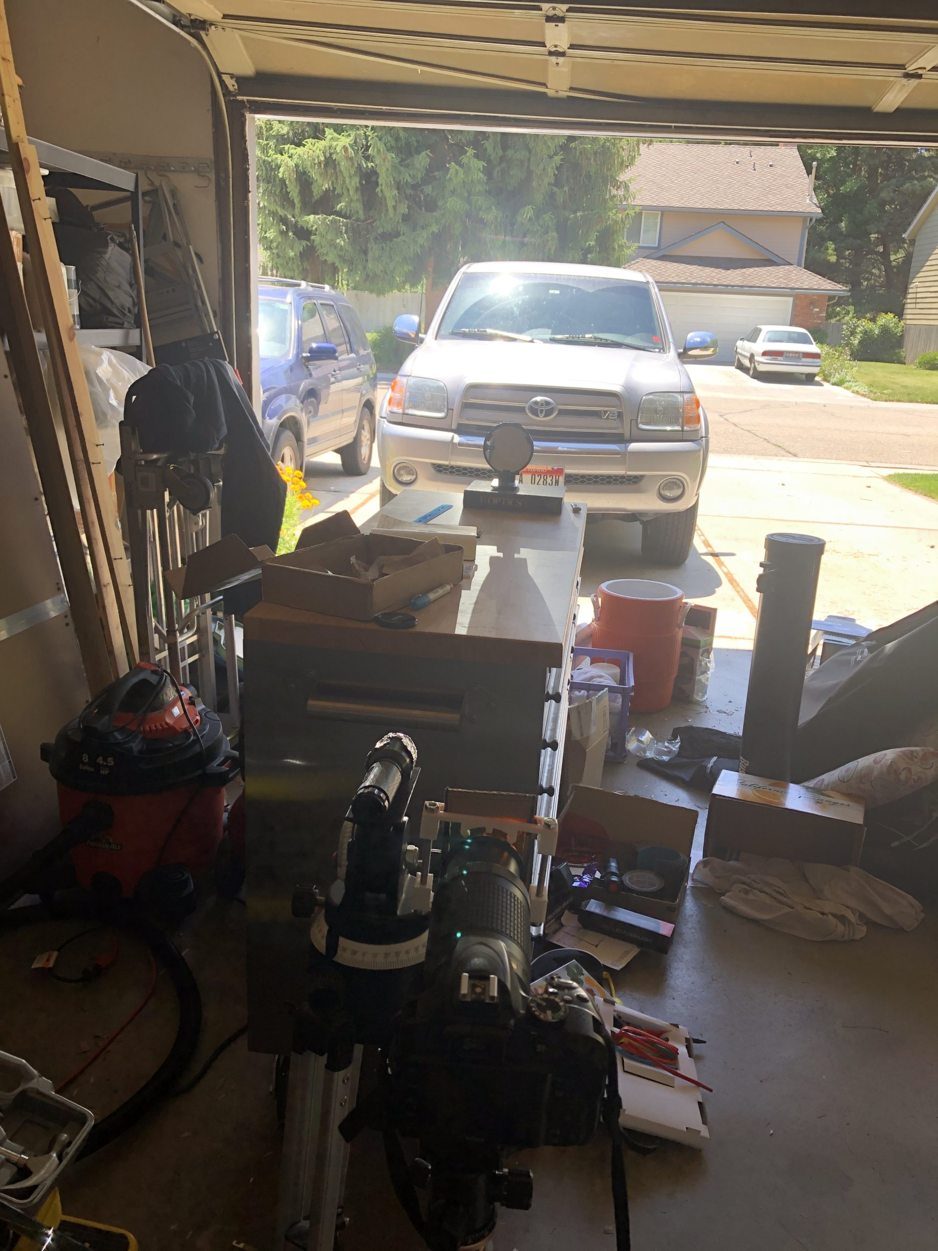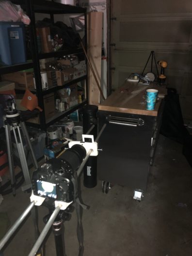 As a part of this step in the process, I set up a rudimentary Schlieren system with my mobile work studio (a rolling counter in my garage). Here’s what it looked like: