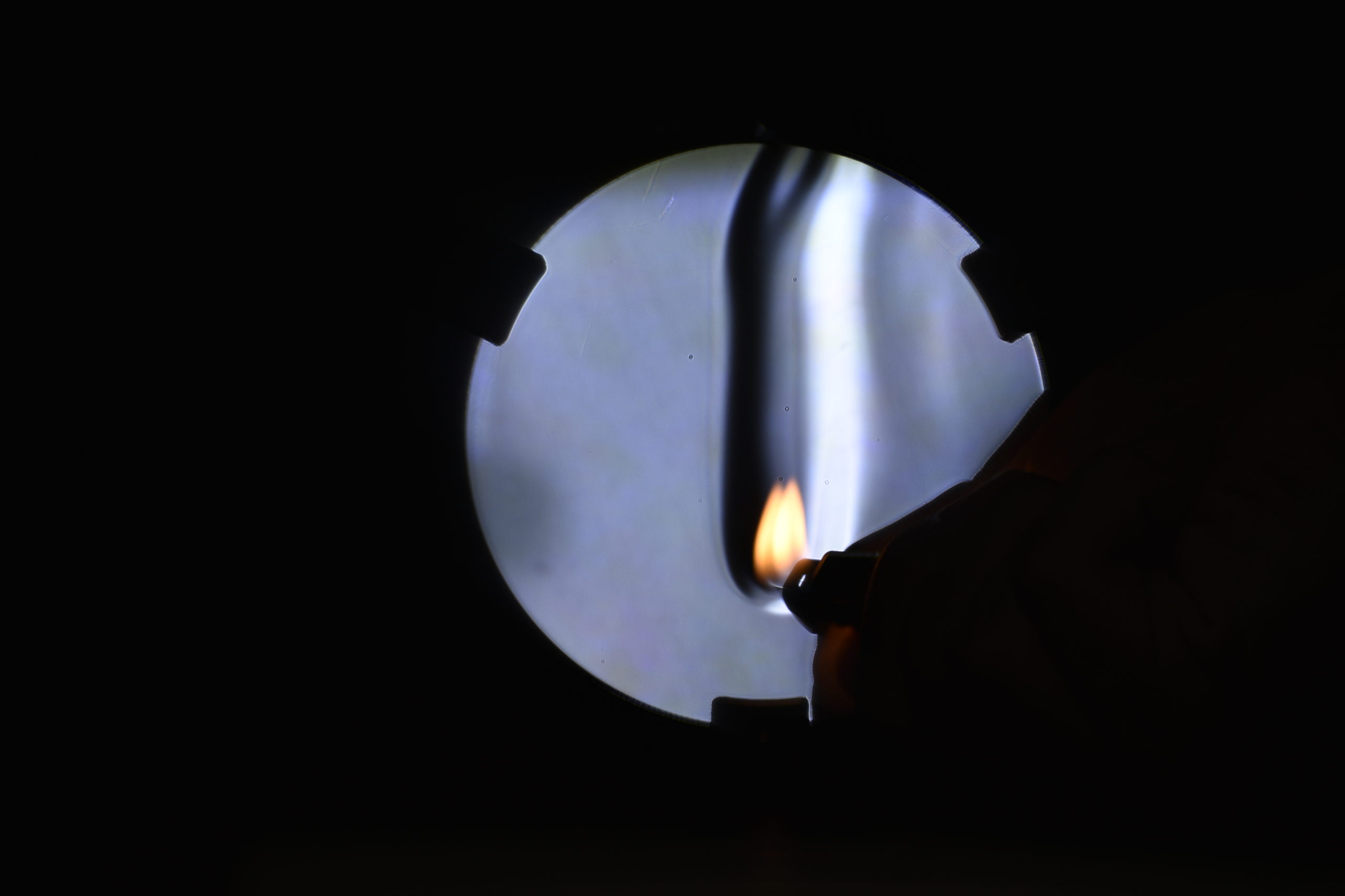 No design or experiment is complete if it doesn’t work. So, here are the images captured using the different setups of the Schlieren Imaging Aid. During various experimental shoots and calibration, a number of interesting phenomena presented themselves, so these images (although they don’t show the Schlieren Effect) have been included at the end of this section.