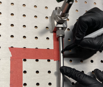 - Close the nearest set of valves to momentarily disregard the rest of the system. Then slowly spray a little helium to check if there is a spike. If there is no spike, you can mark with a physical identifier that the fittings for that section are good to go.