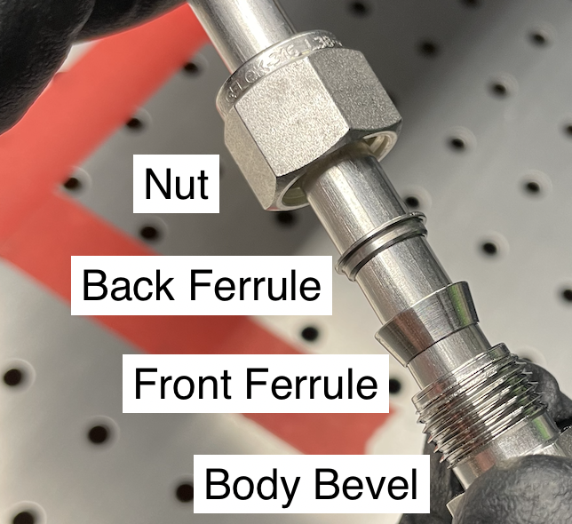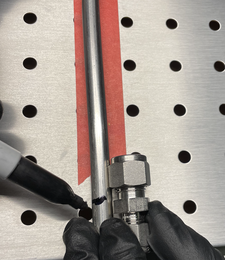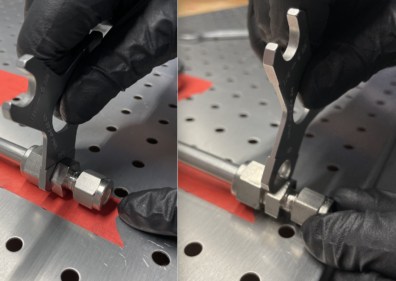 Be sure to use the swaged fitting gauge tool and following the torque guides when installing swaged fittings. Mark the fitting with a line extending across both sides of the fitting once you have done it correctly. When done correctly, swaged compression fittings can be reusable over the lifetime of the experiment.