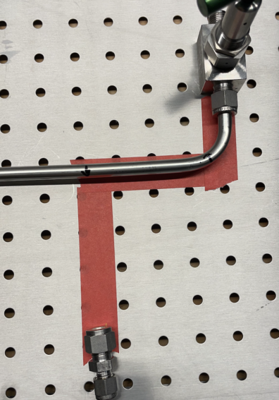 Just as you would check a vacuum chamber for leaks, you also must do the same thing with your plumbing manifold. After the manifold is hooked up to the supply lines (helium and hydrogen in our case), vent stack, and the system itself (vacuum chamber), it is time to initiate vacuum pulldown. With hundreds of fitting interfaces, it is rare to have the system perfect the first time, although that is our goal. The most common issue that causes leaks is simply not tightening the fittings enough. Which luckily is a minor fix. To remedy this, tighten the nut further. Although we use the gage to measure if the nut is tight enough. Not every fitting is quite the same, thus you must tighten the nut further.