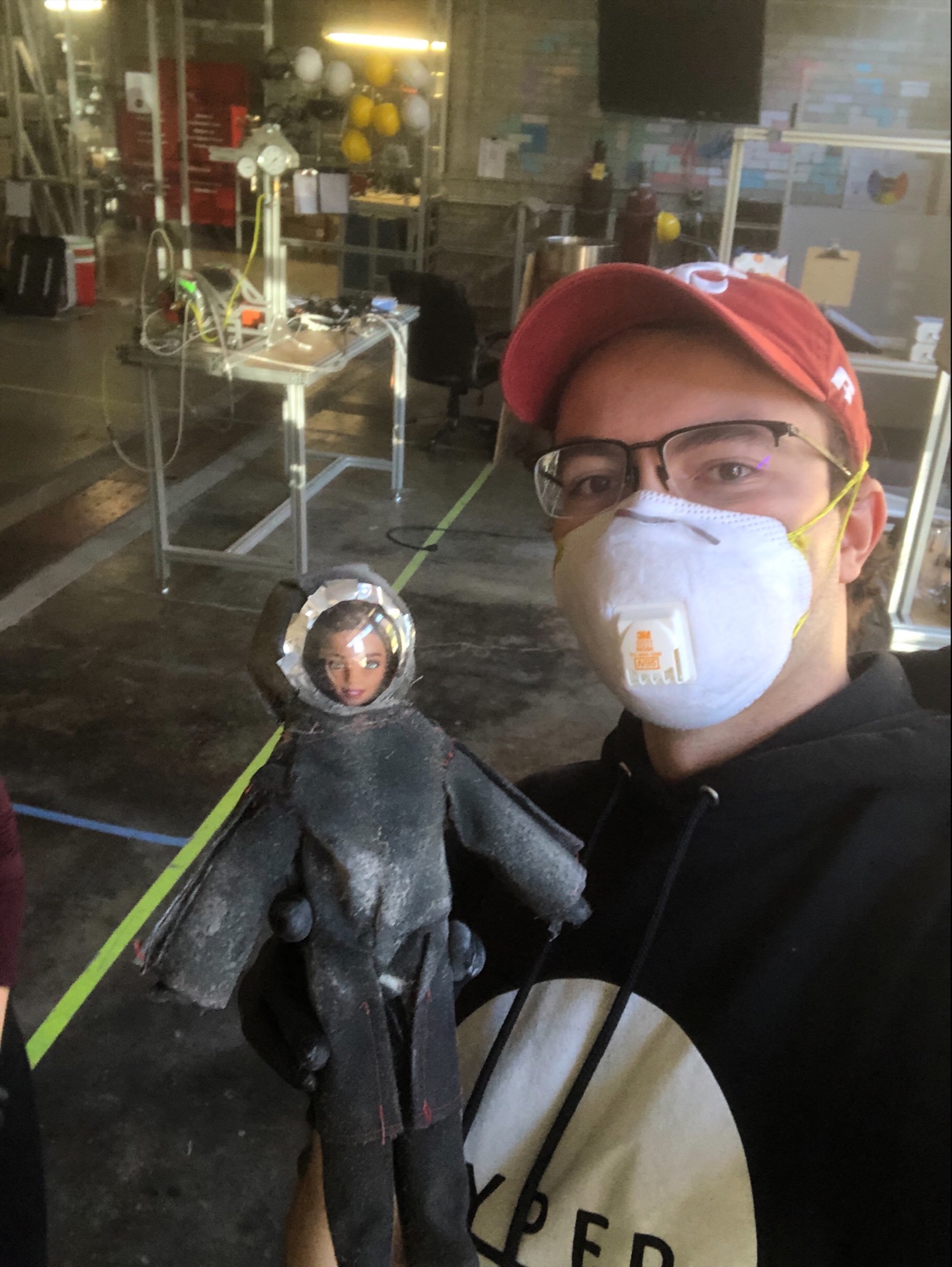 Kulsa, using a doll as a model and her handy tailoring skills, developed a 1/6th scale astronaut suit using the kevlar nomex material. This doll, aptly named “Rosie” after the cultural icon Rosie the Riveter, became Borea’s final test subject. After massing the spacesuit for adhered dust, Rosie was placed in the vacuum chamber to embark on her final mission. A spray bar system inside the chamber allowed for 360 degree coverage, simulating the team’s proposed usage. She was then spot cleaned with the hand-held sprayer before being massed once more, resulting in yet another successful outcome.