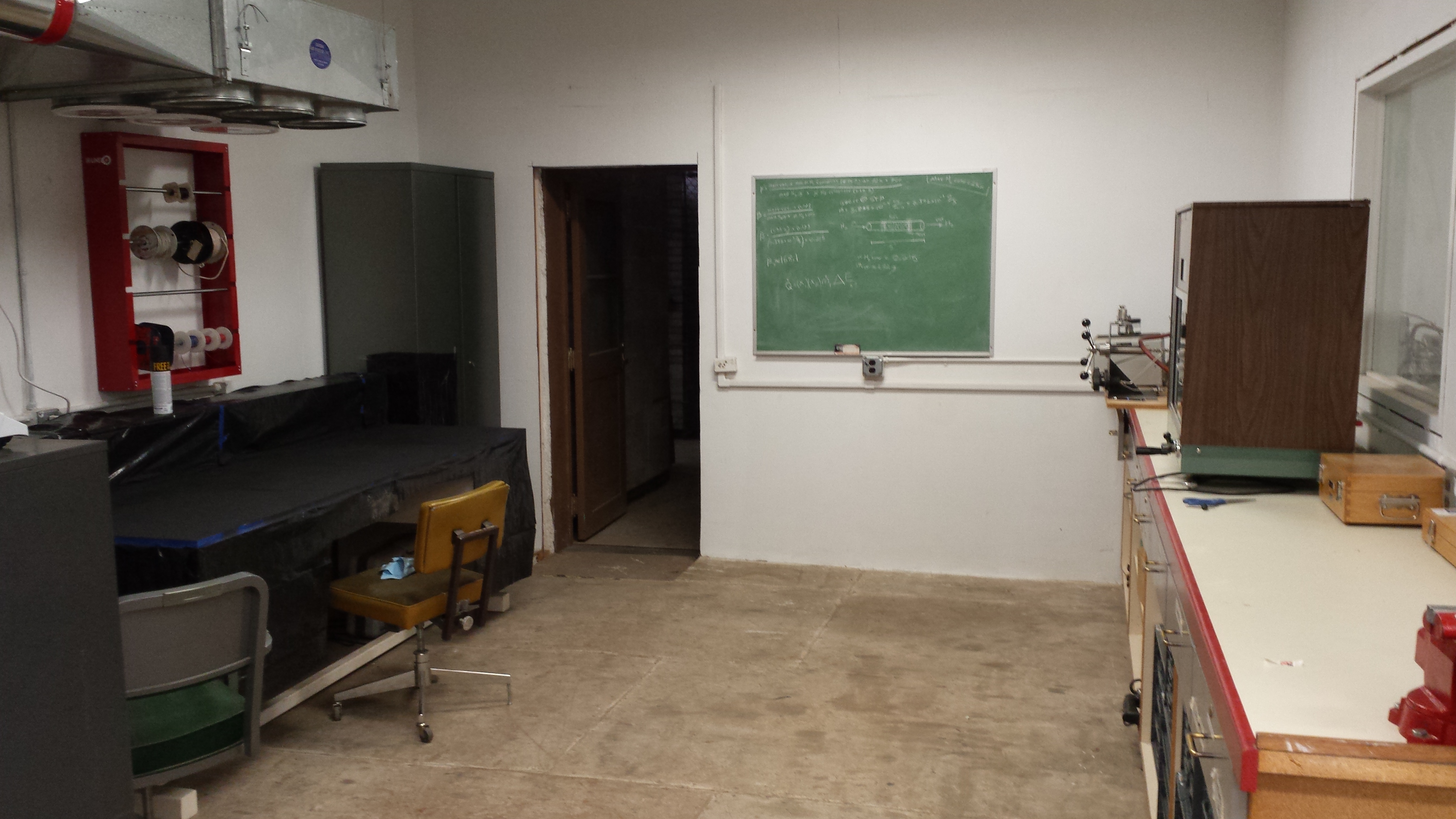 On May 11th, 2015 at 3:00 pm a team of 8 took on the task of creating a lab space ideal for the research and development of small-modular hydrogen liquefaction. The space (photos seen below) was to accomplish three primary goals: provide an area ideal for experimentation and research, encourage heuristic thinking in order to overcome any challenge that may arise, and promote the air of professionalism necessary to accomplish something new. With these goals always in sight the process to accomplish them began.